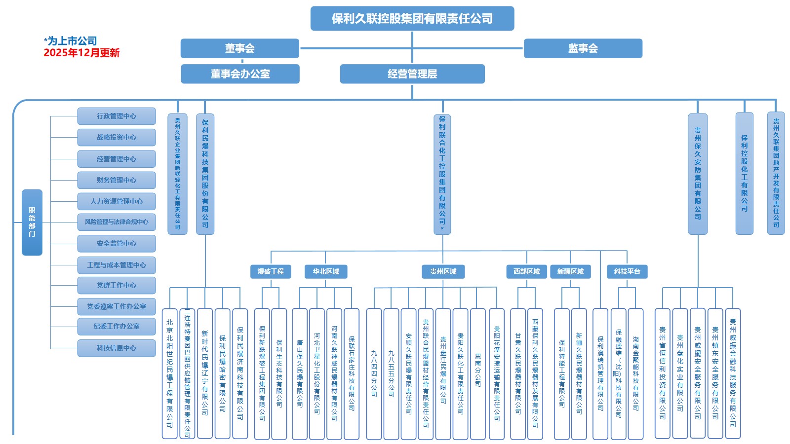 保利久联控股集团有限责任公司(简称“保利久联”)是保利集团民爆业务发展平台,是科研实力较强、影响力较大、爆破技术一流,集研发、生产、爆破、施工服务一体化全产业链发展的中国最大的综合性民爆企业集团。以“固本强基、智造强企、做特工程、绿色发展”为战略主题,持续打造本质安全型、科技创新型、环境友好型企业。公司拥有炸药许可产能居全国前列,工业雷管许可产能全国第一。民爆器材和装备生产基地主要分布遍及11省(市、自治区),产品销售覆盖全国各地及和世界30多个国家和地区。近年来先后承接市政、道路、矿山、隧道、海工、城市拆除和国土空间修复治理等300多个重大工程项目。